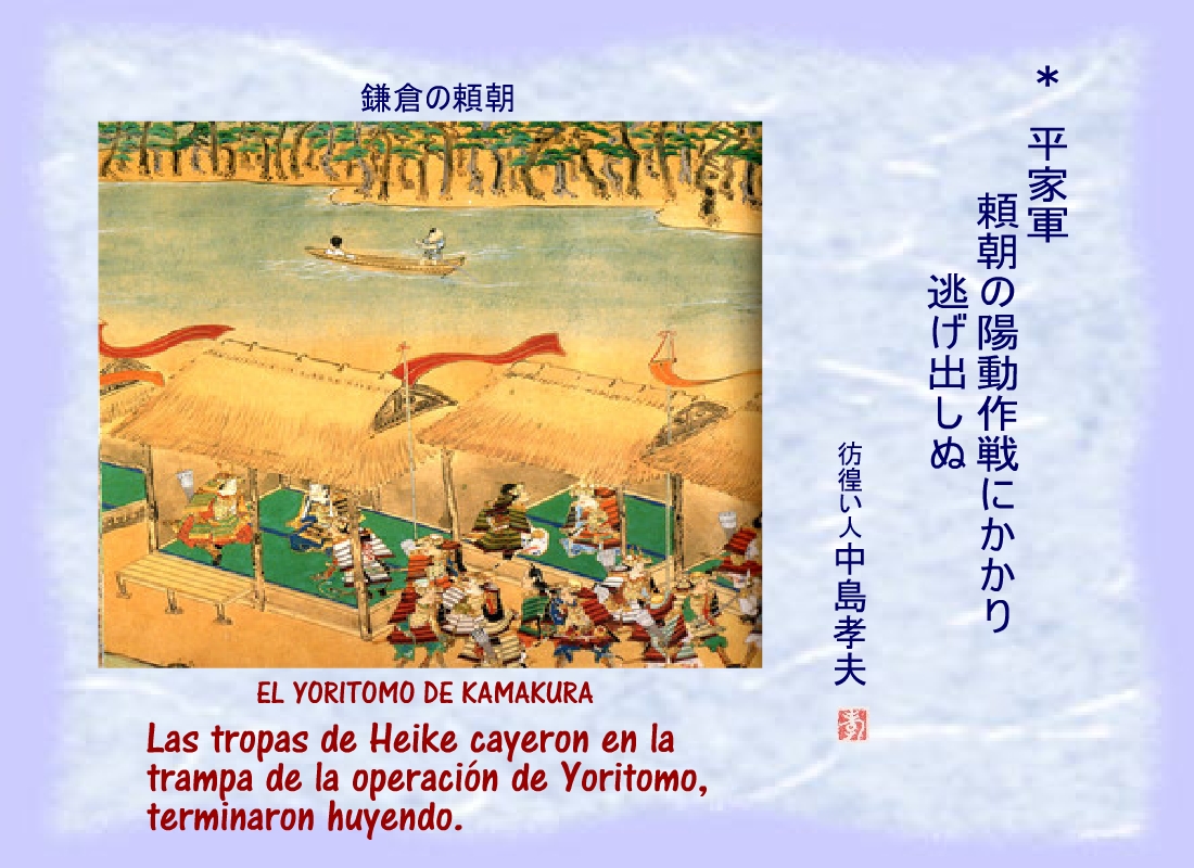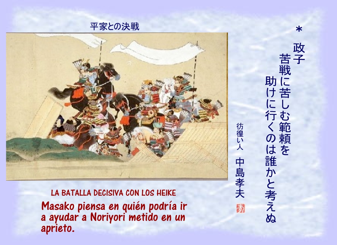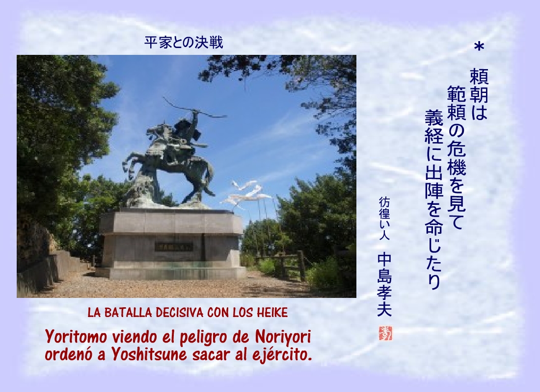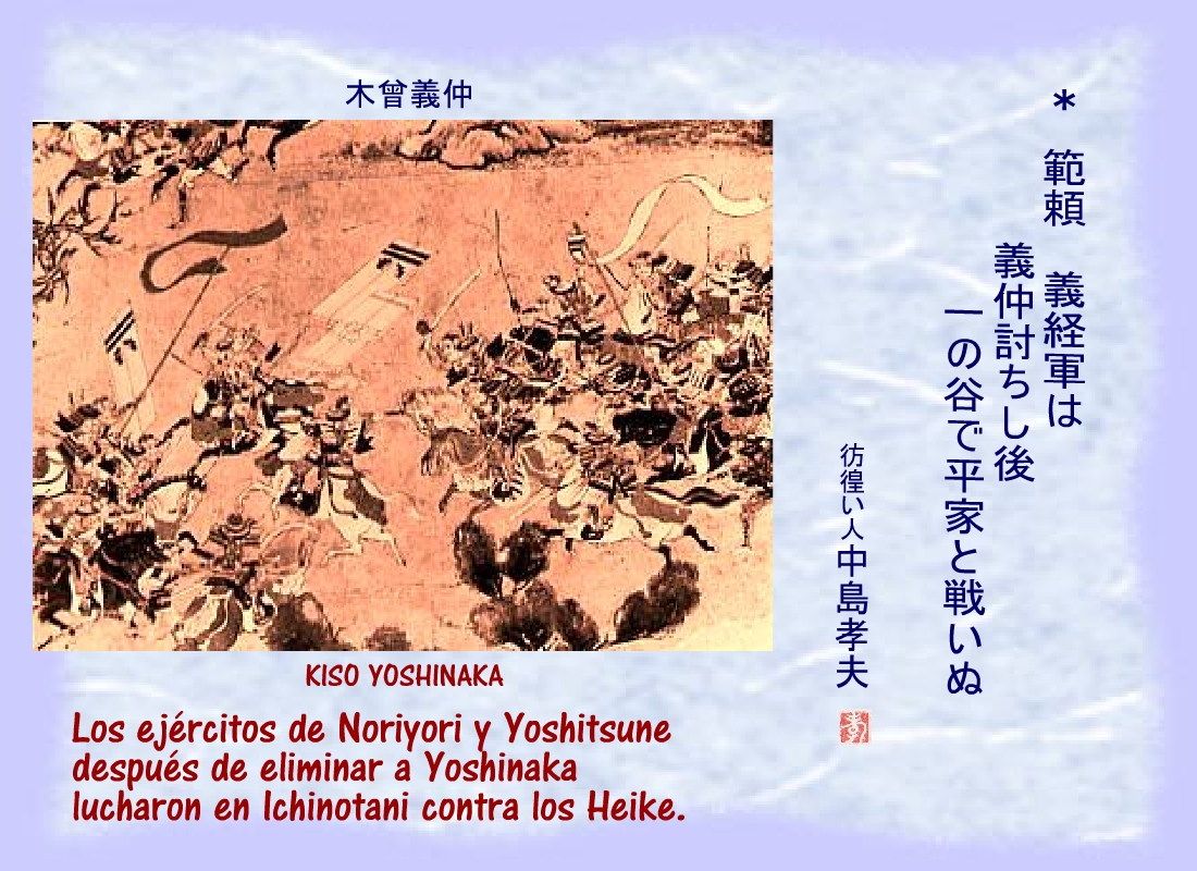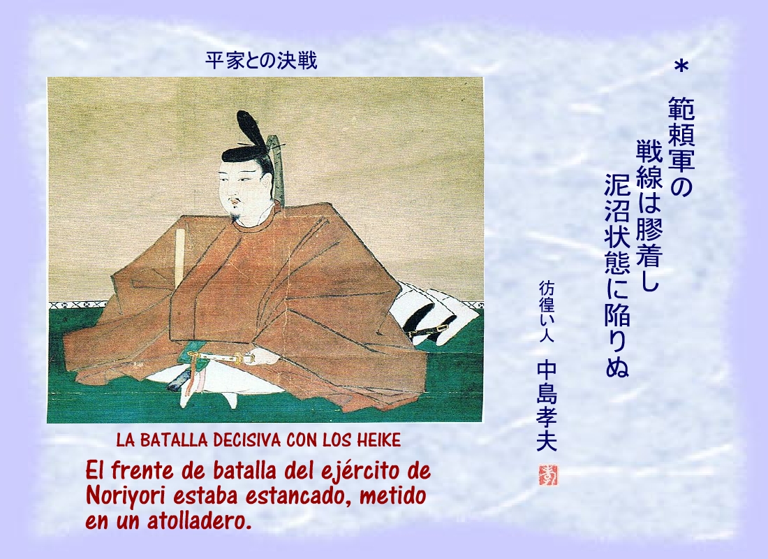 Yoritomo viendo el peligro de Noriyori ordenó a Yoshitsune sacar al ejército. |