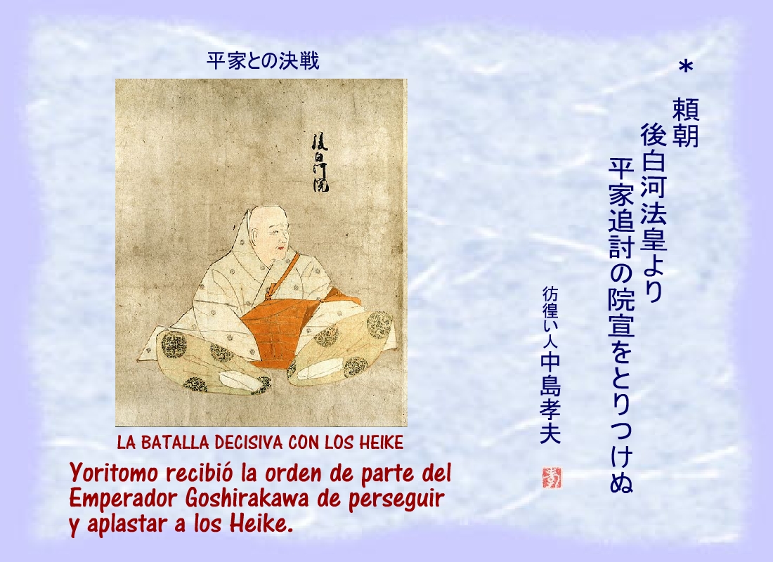 Yoritomo recibió la orden de parte del Emperador Goshirakawa de perseguir y aplastar a los Heike. |