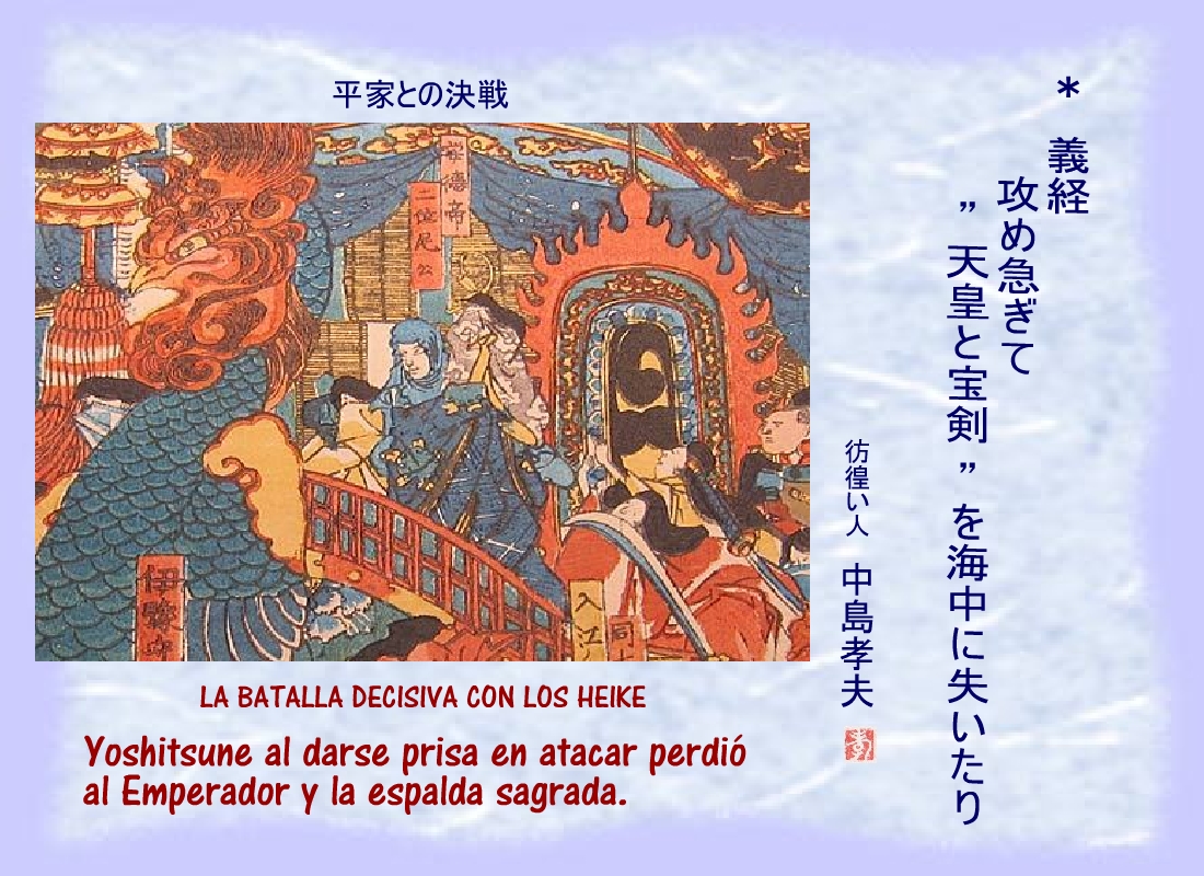 Yoshitsune al darse prisa en atacar perdió al Emperador y la espalda sagrada. |