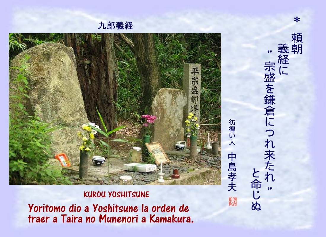 Yoritomo dio a Yoshitsune la orden de traer a Taira no Munenori a Kamakura. |