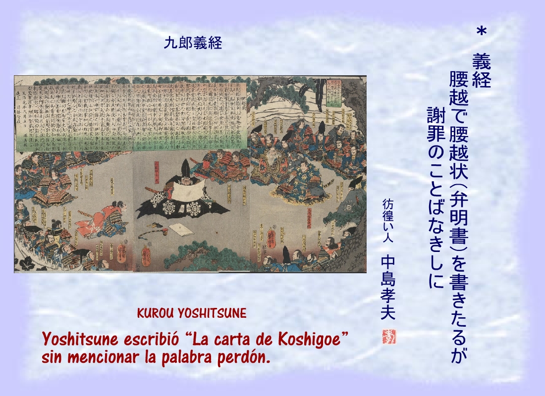 Yoshitsune escribió “La carta de Koshigoe” sin mencionar la palabra perdón. |