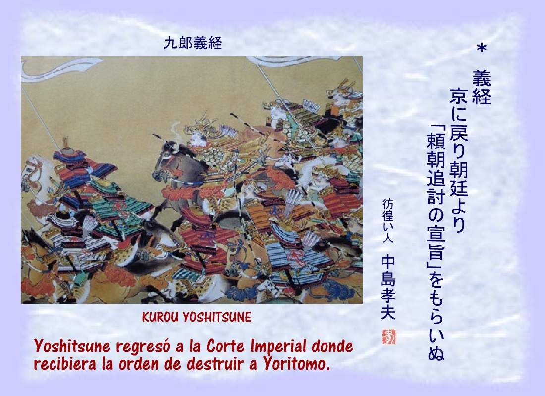 Yoshitsune regresó a la Corte Imperial donde recibiera la orden de destruir a Yoritomo. |