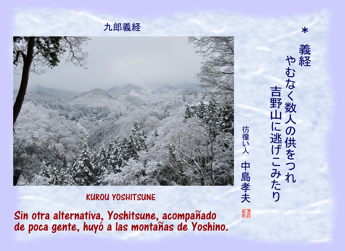Sin otra alternativa, Yoshitsune, acompañado de poca gente, huyó a las montañas de Yoshino. |