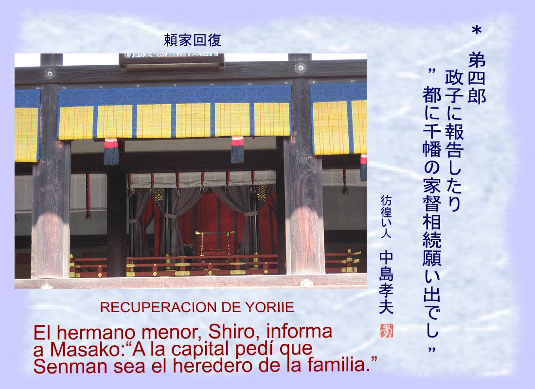 Yoshimura regresó a Izu, transmitió a Masako un mensaje de Yoriie. |
