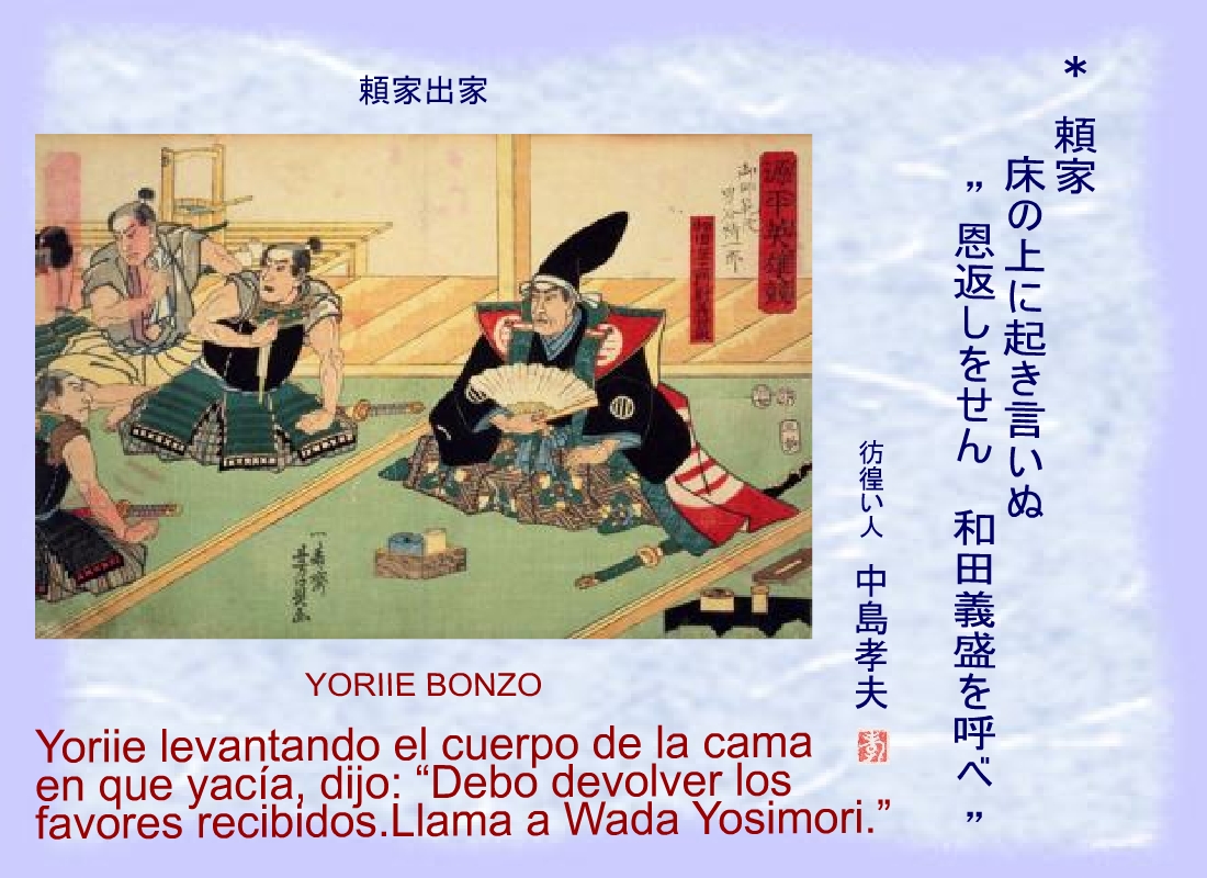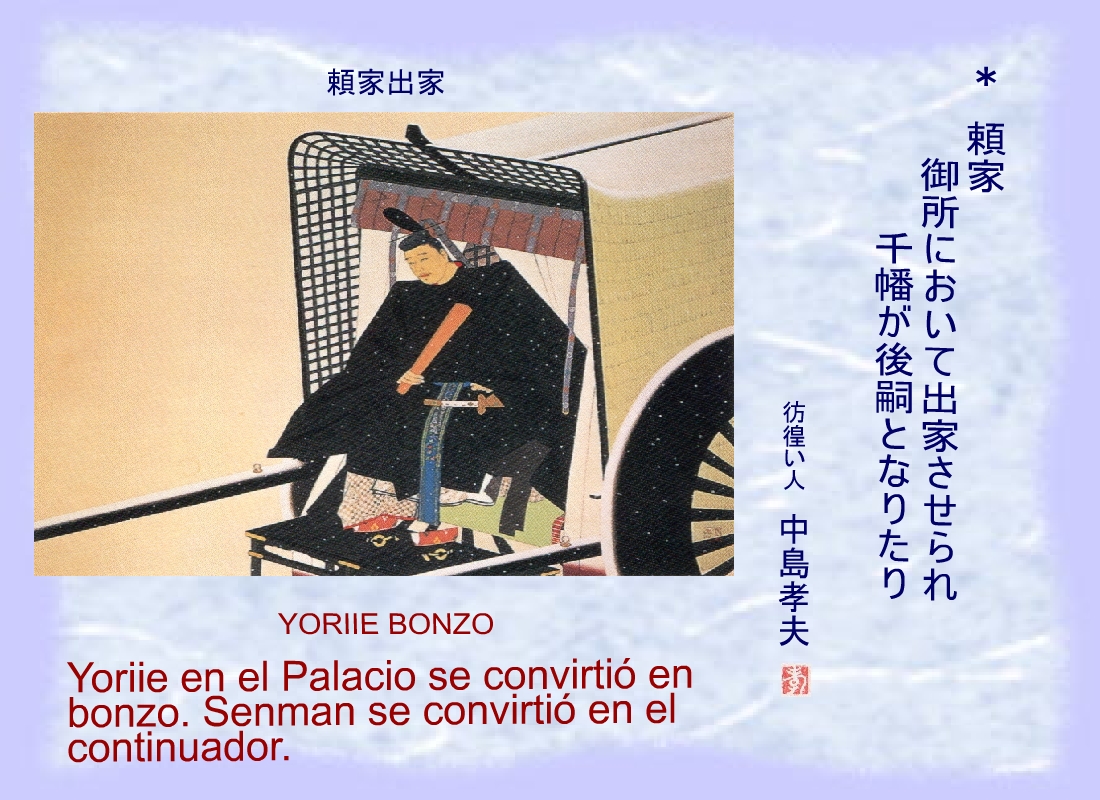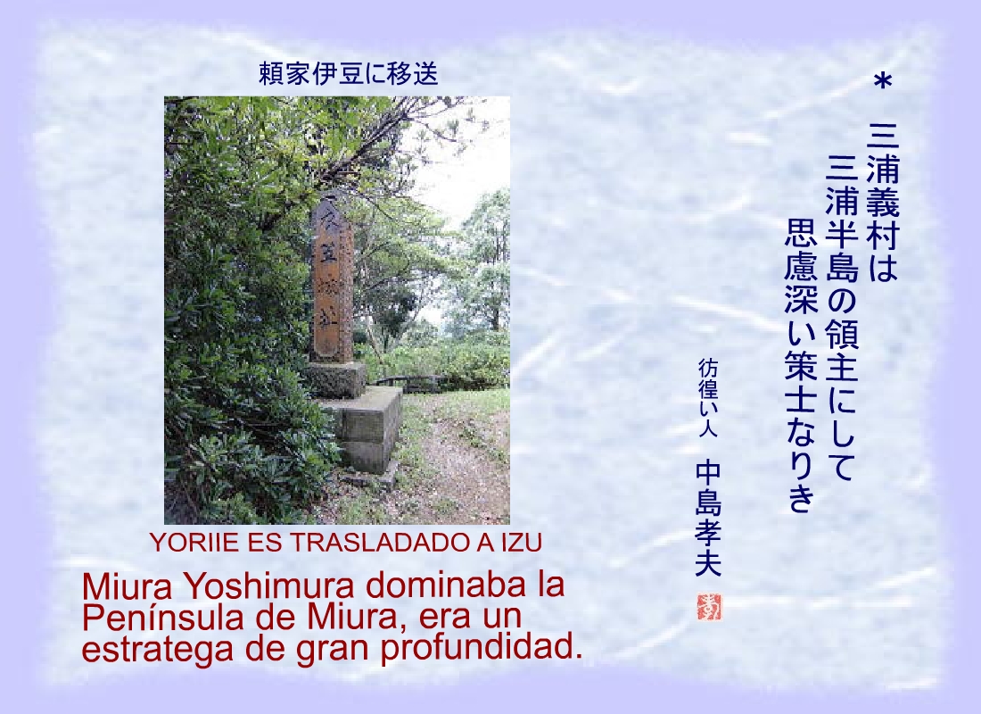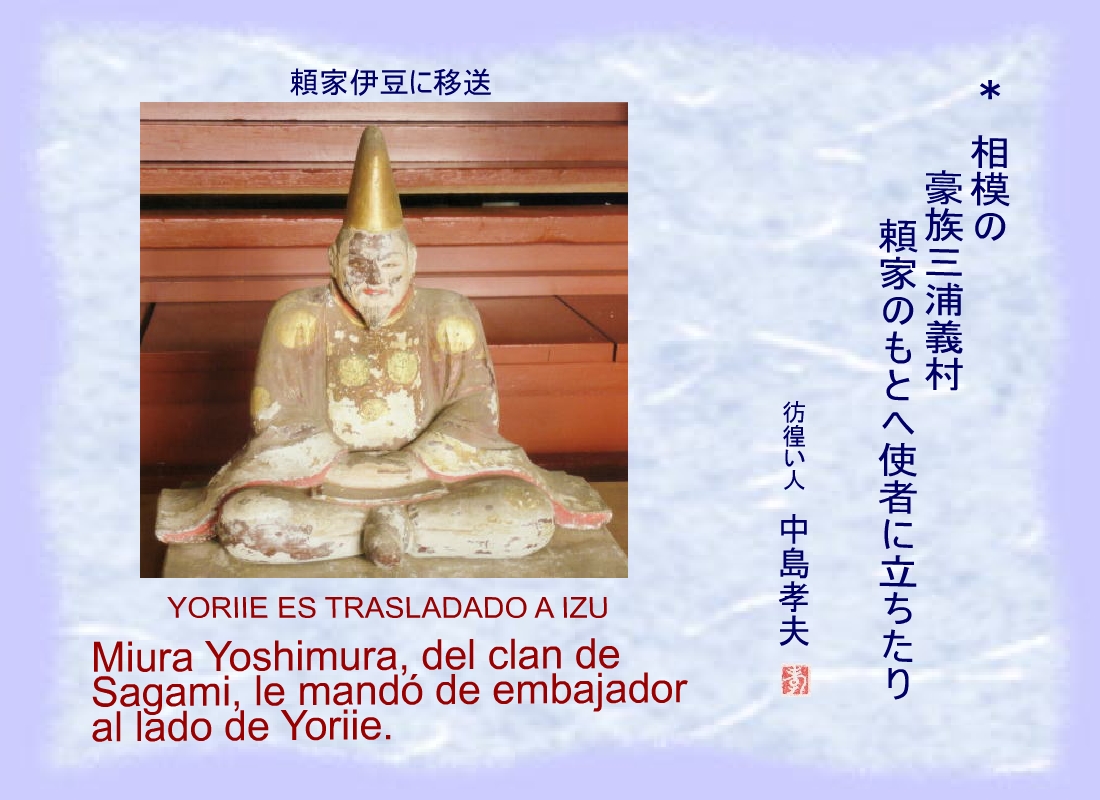 Miura Yoshimura, del clan de Sagami, le mandó de embajador al lado de Yoriie. |