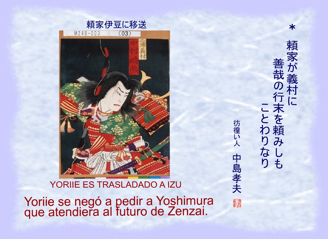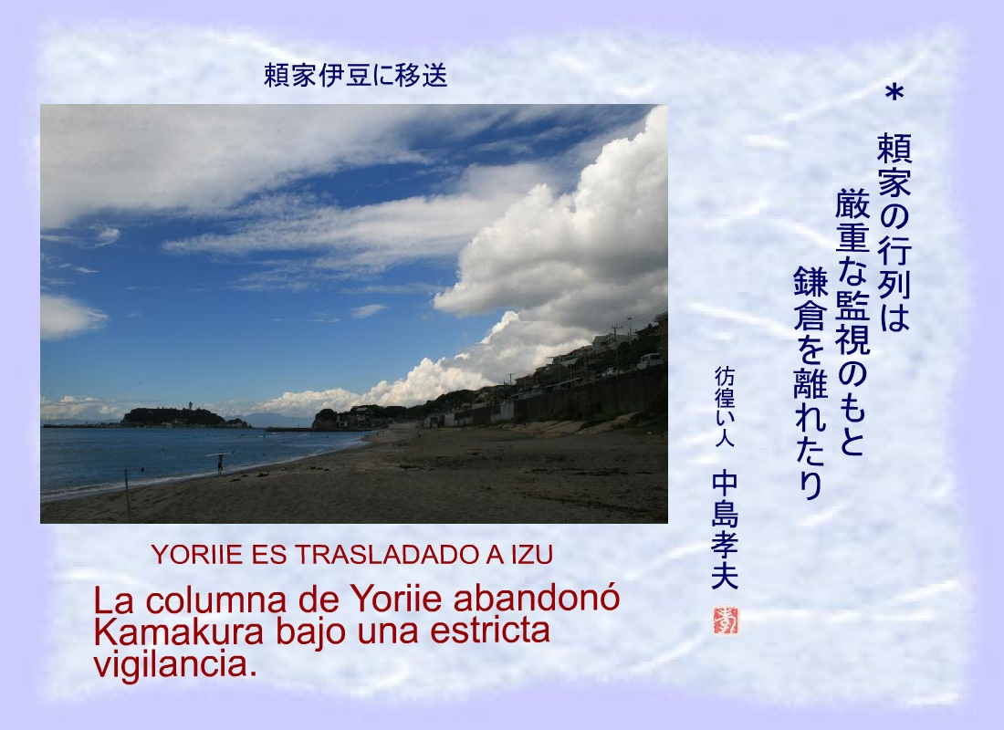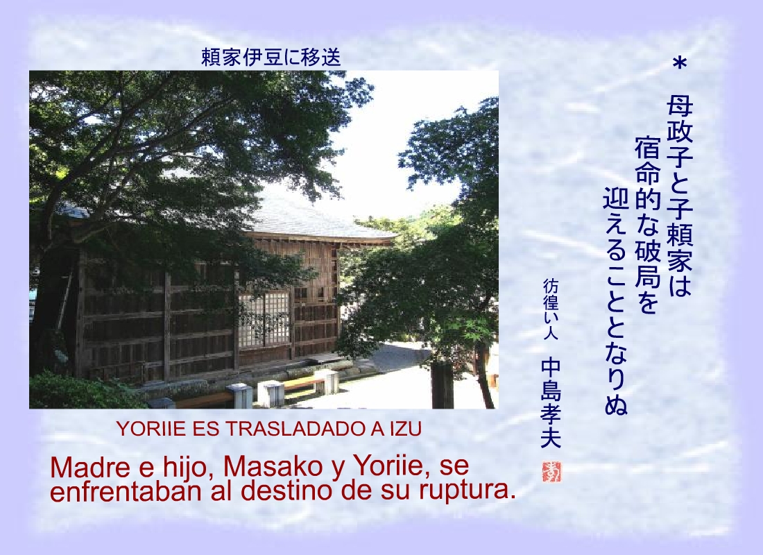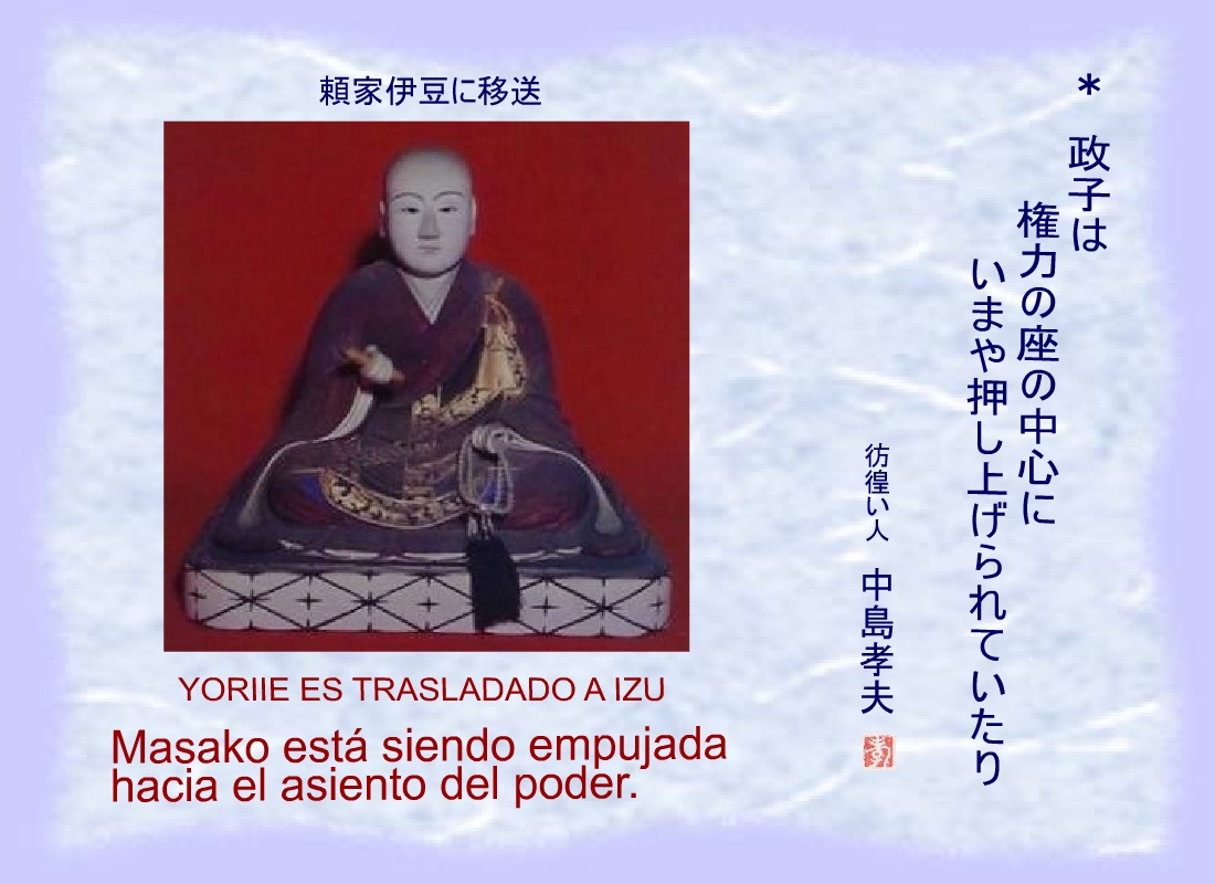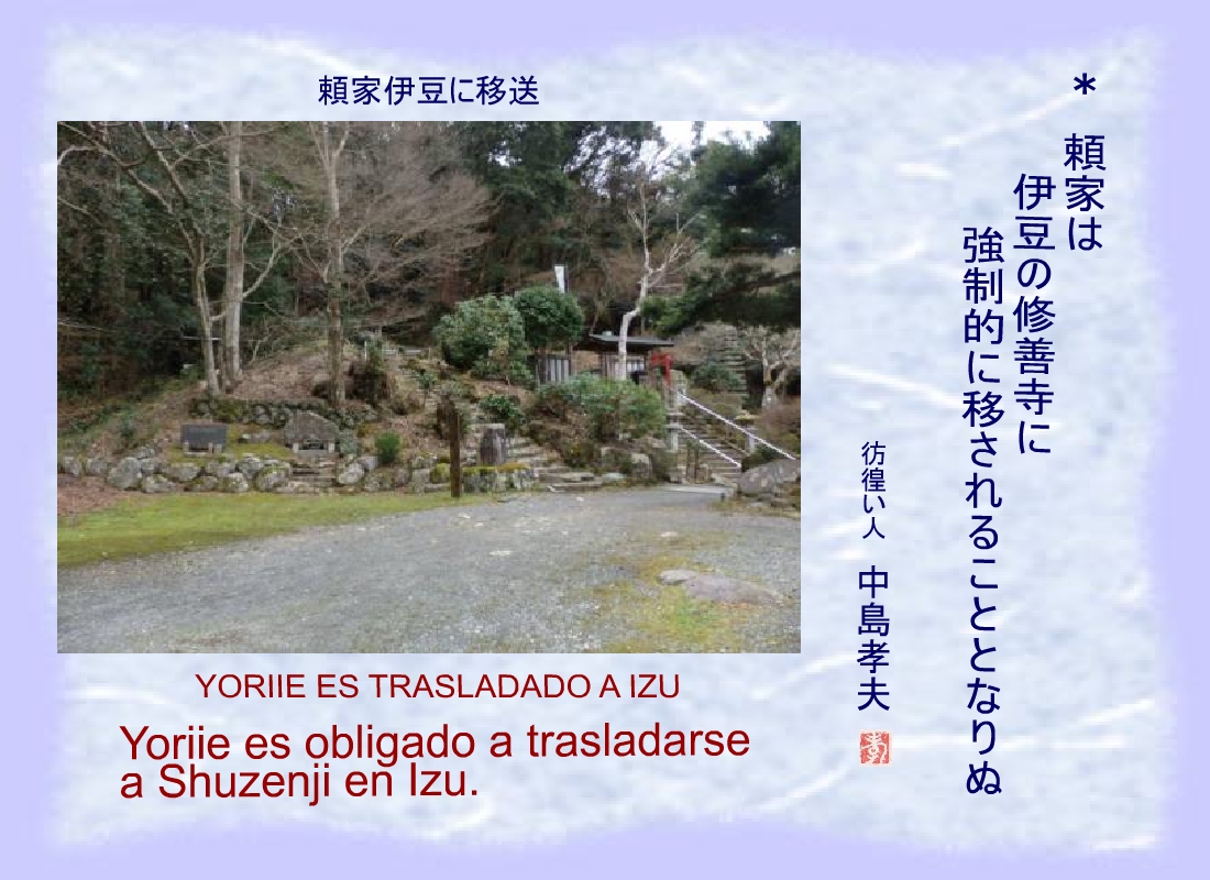 En nombre de Masako se despojó a Yoriie de su condición de General y fue trasladado a Izu. |