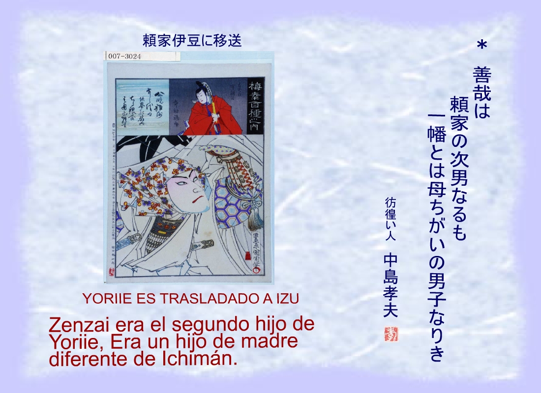 Zenzai era el segundo hijo de Yoriie, Era un hijo de madre diferente de Ichimán. |
