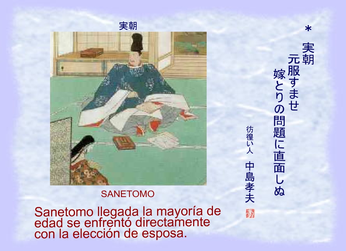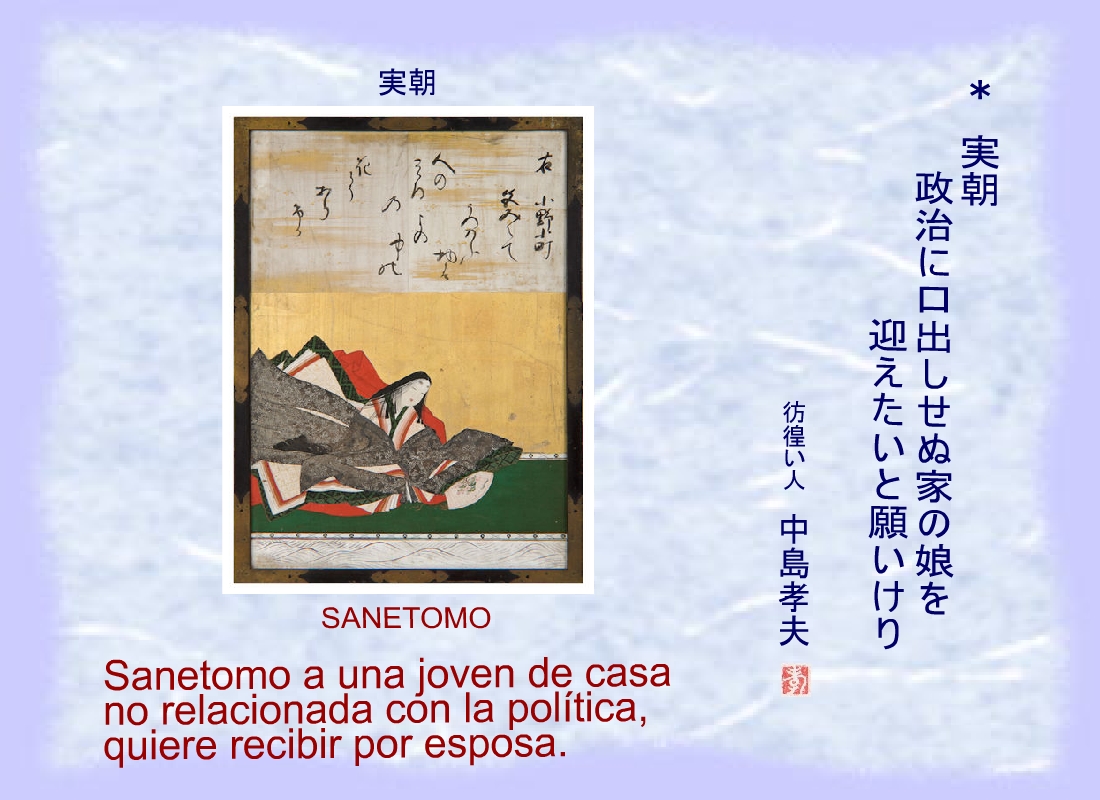 Sanetomo desea por esposa una mujer de Kyoto educada en el waka. |