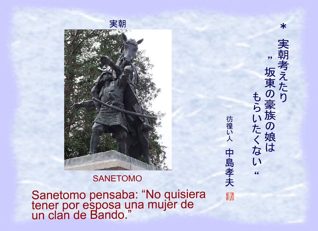 Sanetomo pensaba: “No quisiera tener por esposa una mujer de un clan de Bando.” |
