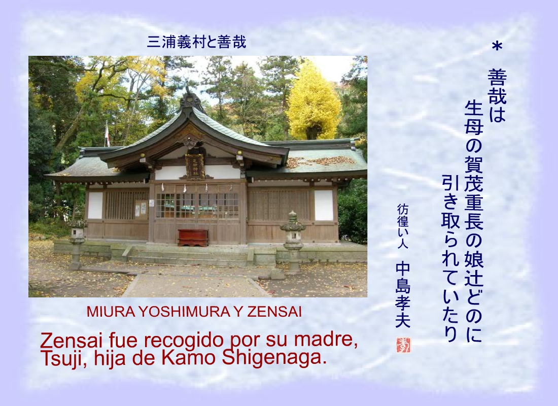 Zensai fue recogido por su madre, Tsuji, hija de Kamo Shigenaga. |
