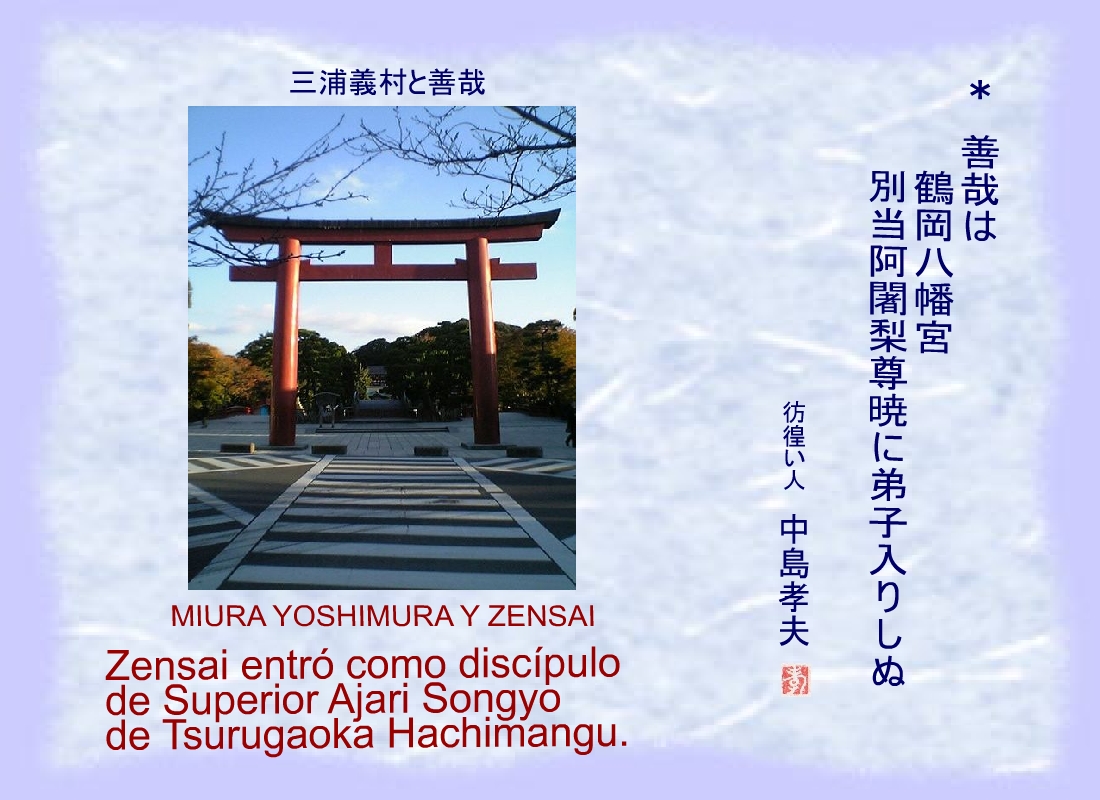 Zensai entró como discípulo de Superior Ajari Songyo de Tsurugaoka Hachimangu. |