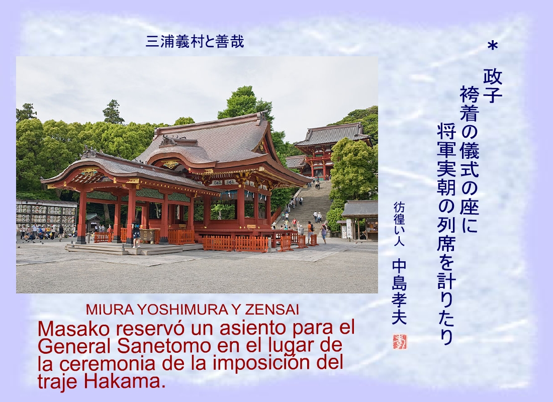 Masako reservó un asiento para el General Sanetomo en el lugar de la ceremonia de la imposición del traje Hakama. |