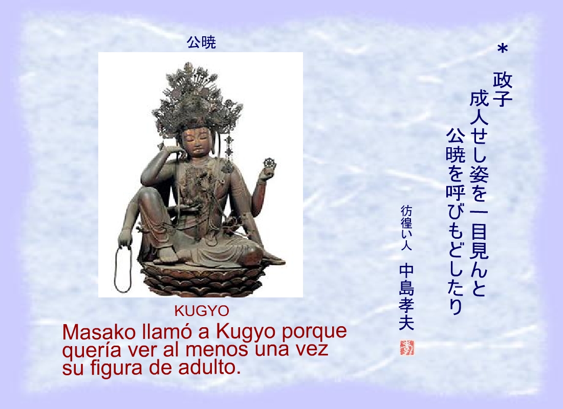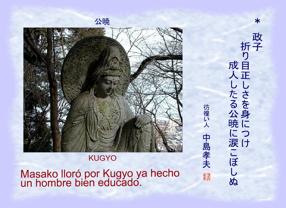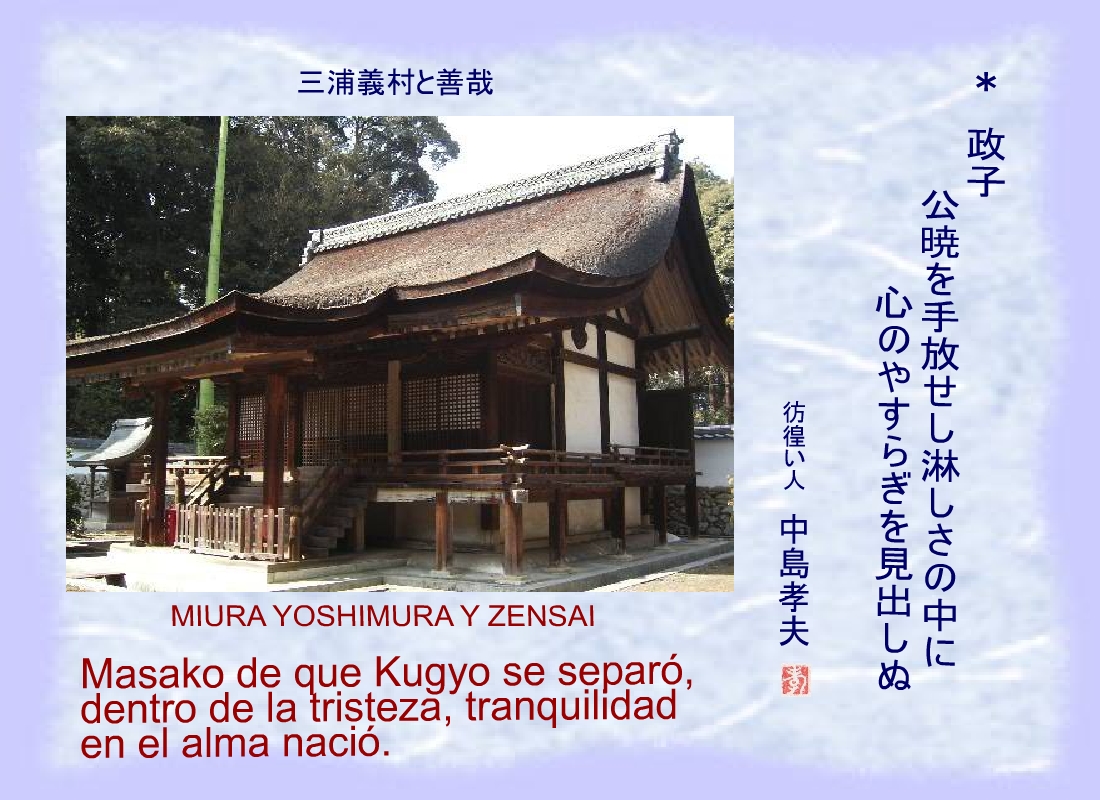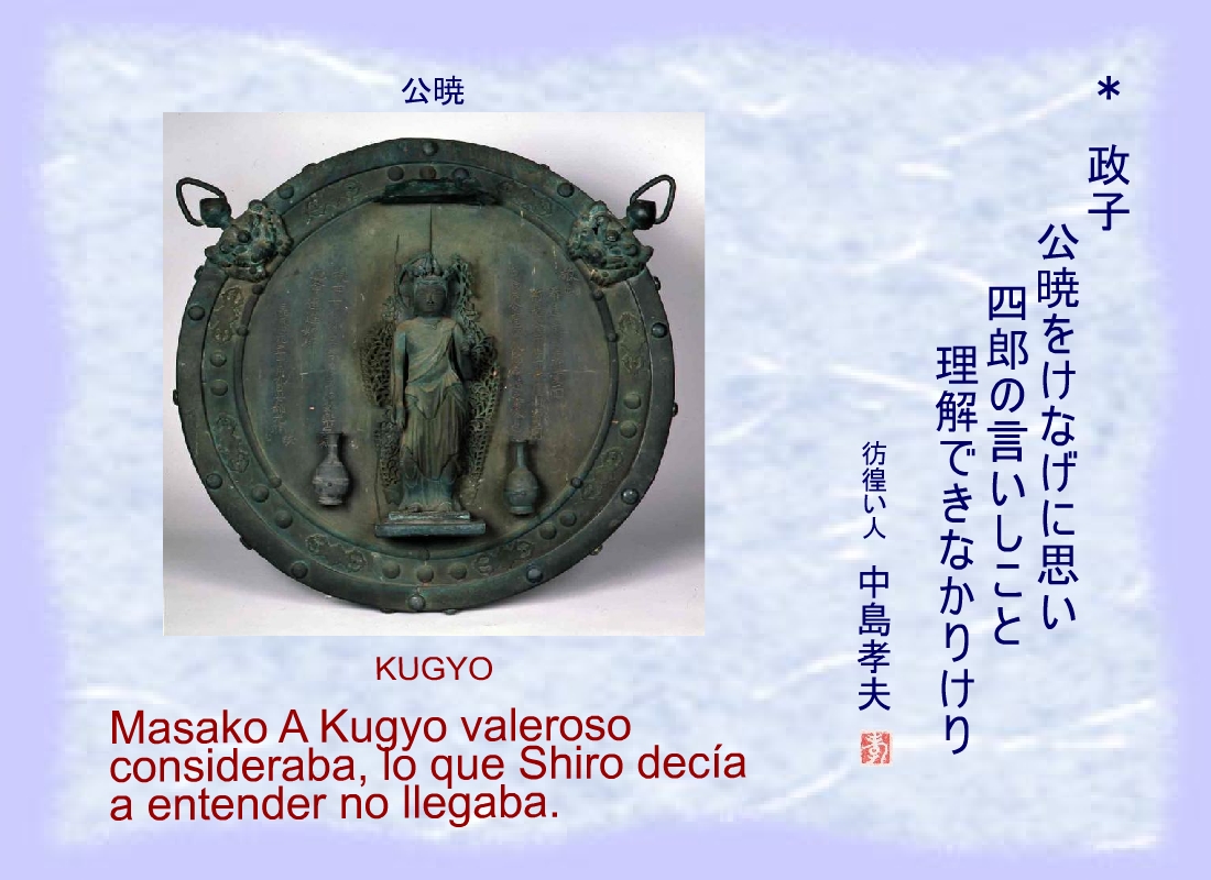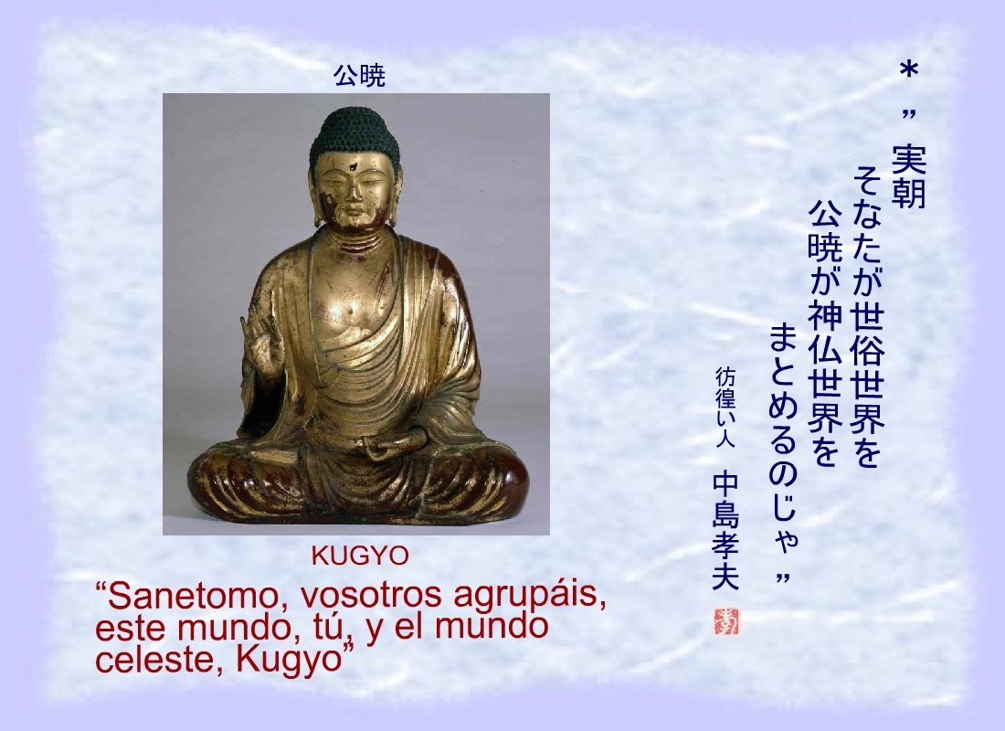 “Sanetomo, vosotros agrupáis, este mundo, tú, y el mundo celeste, Kugyo” |