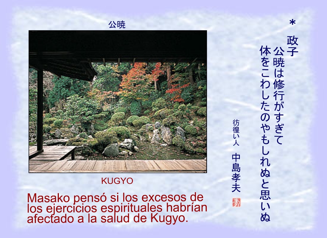 Masako pensó si los excesos de los ejercicios espirituales habrían afectado a la salud de Kugyo. |