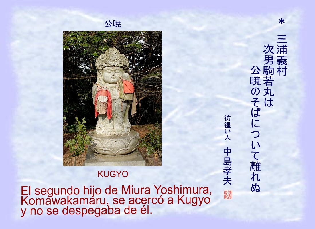 El segundo hijo de Miura Yoshimura, Komawakamaru, se acercó a Kugyo y no se despegaba de él. |