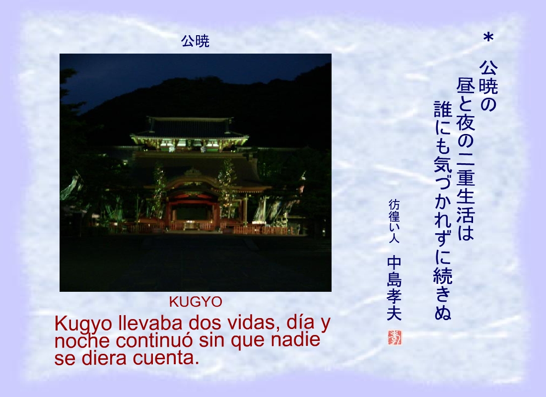 Kugyo llevaba dos vidas, día y noche continuó sin que nadie se diera cuenta. |