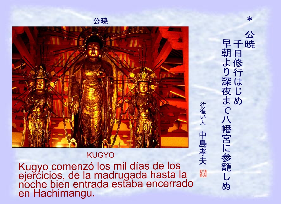 Kugyo comenzó los mil días de los ejercicios, de la madrugada hasta la noche bien entrada estaba encerrado en Hachimangu. |