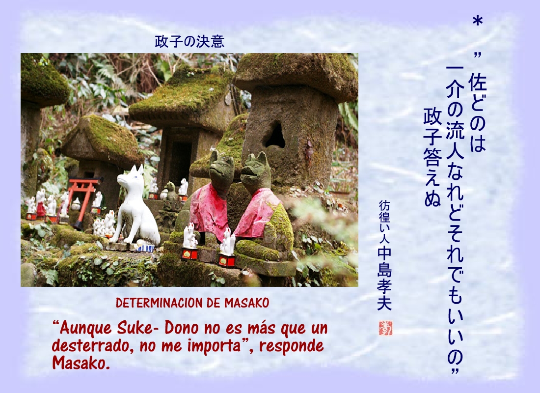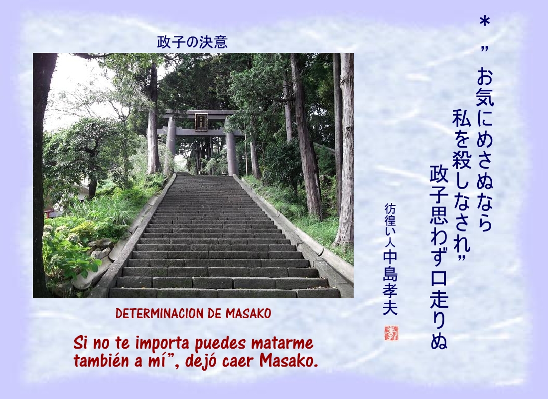 Masako susurra sin alterar el rostro: “ No puede morir sin saber su destino.” |