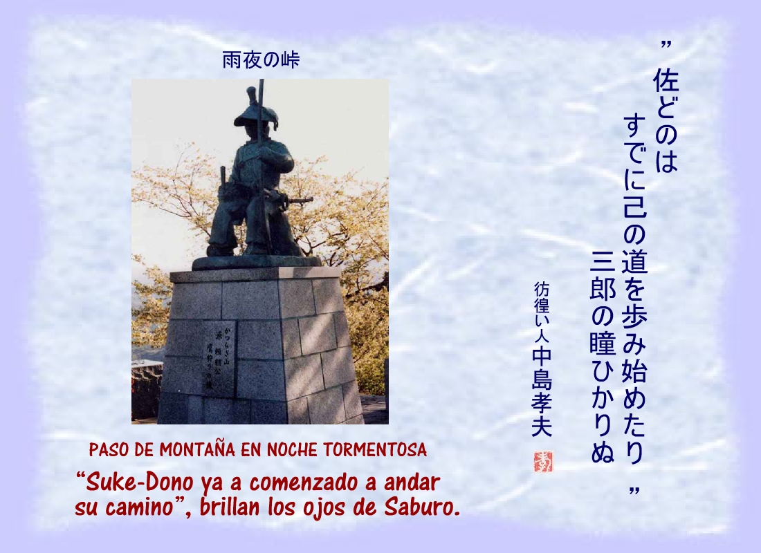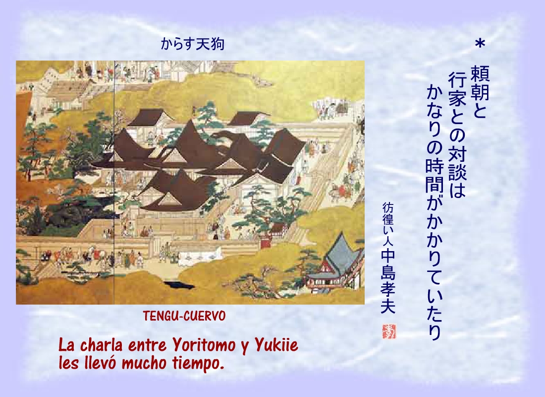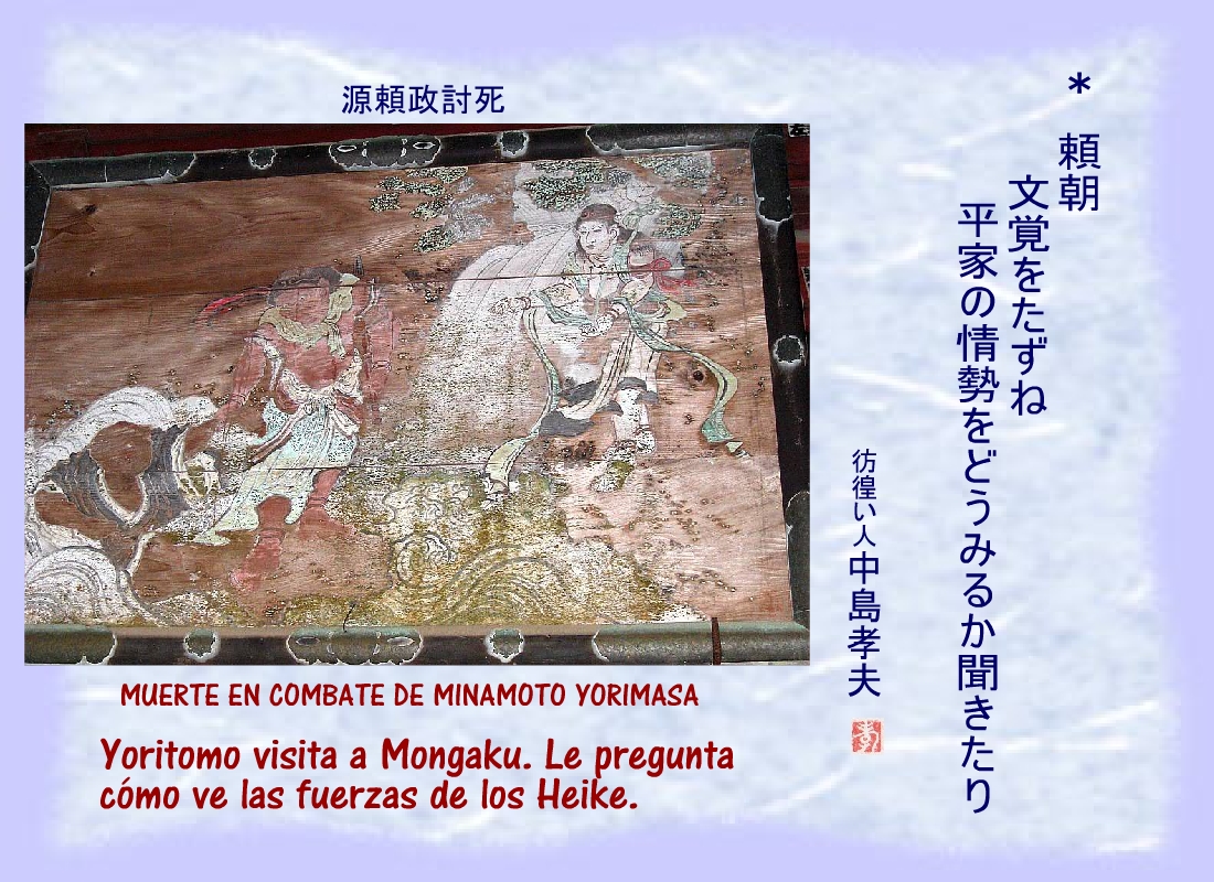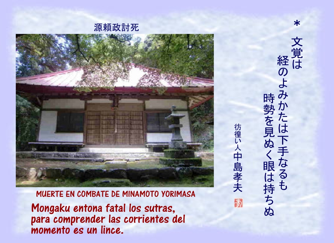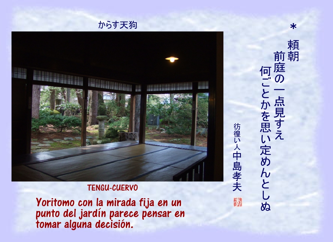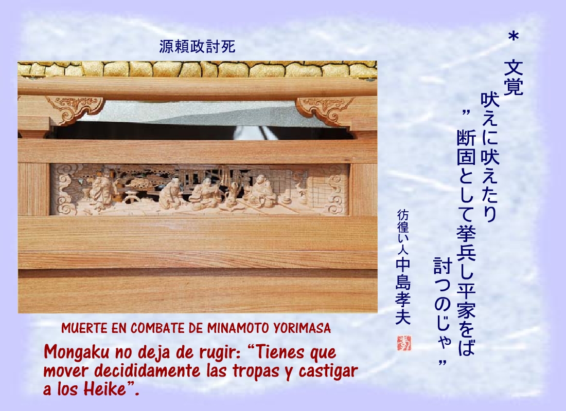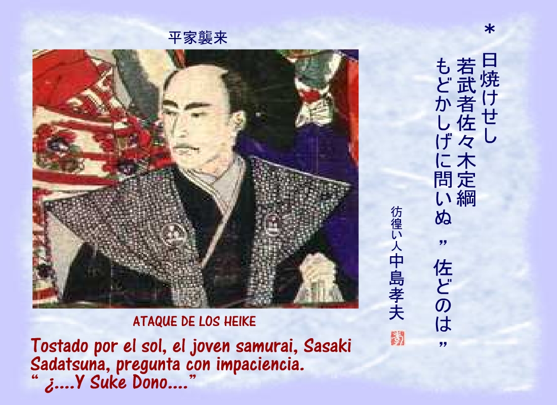 Terriblemente herido, uno de los hombres de Yoritomo se derrumbó cerca del corredor del patio, sin dejar de repetir: “...los nuestros.... los nuestros...” |