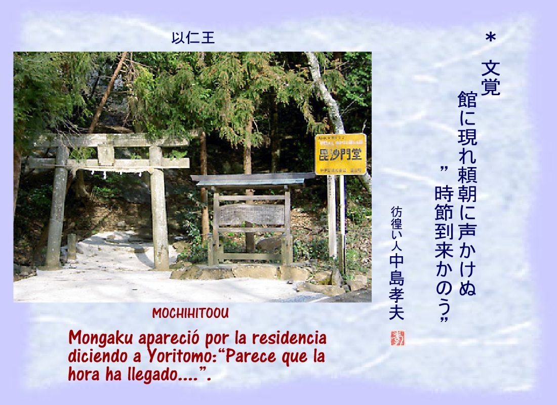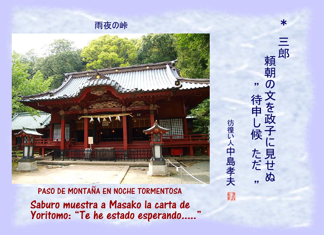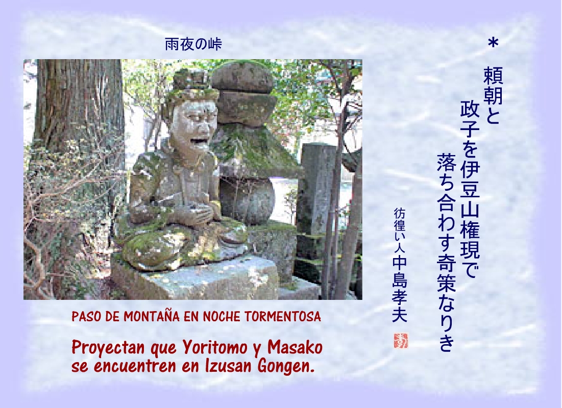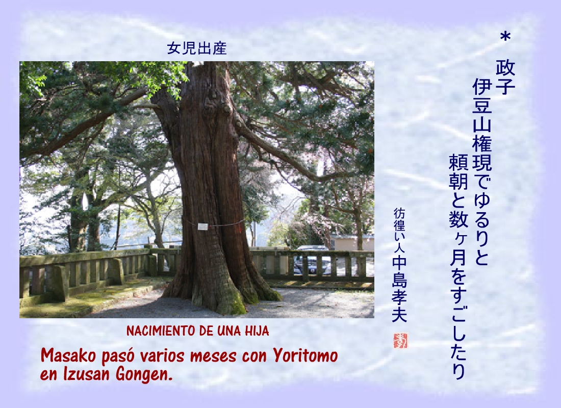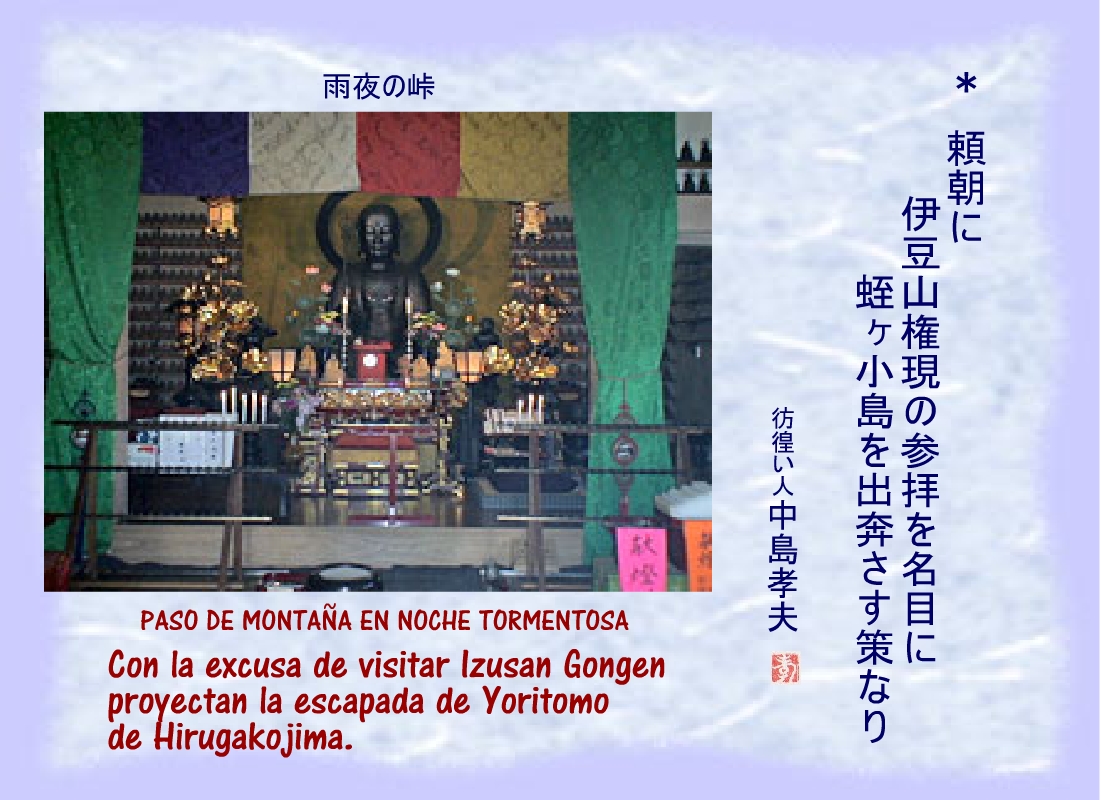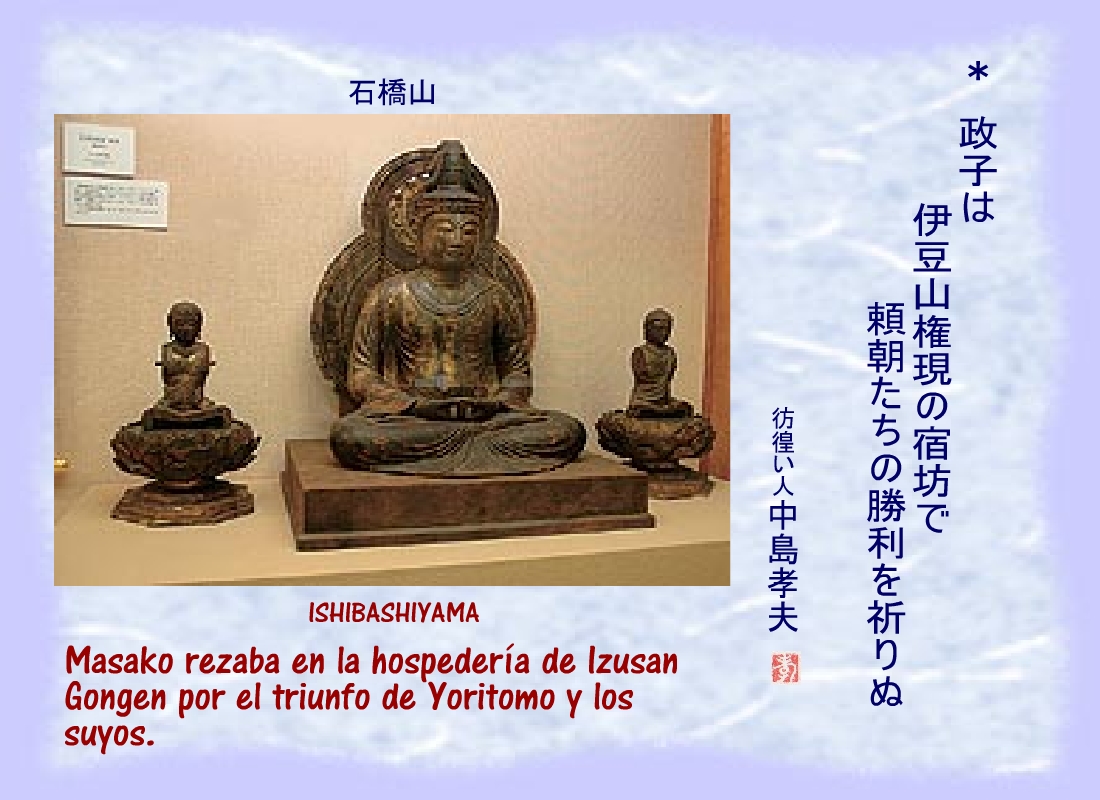 Masako rezaba en la hospedería de Izusan Gongen por el triunfo de Yoritomo y los suyos. |