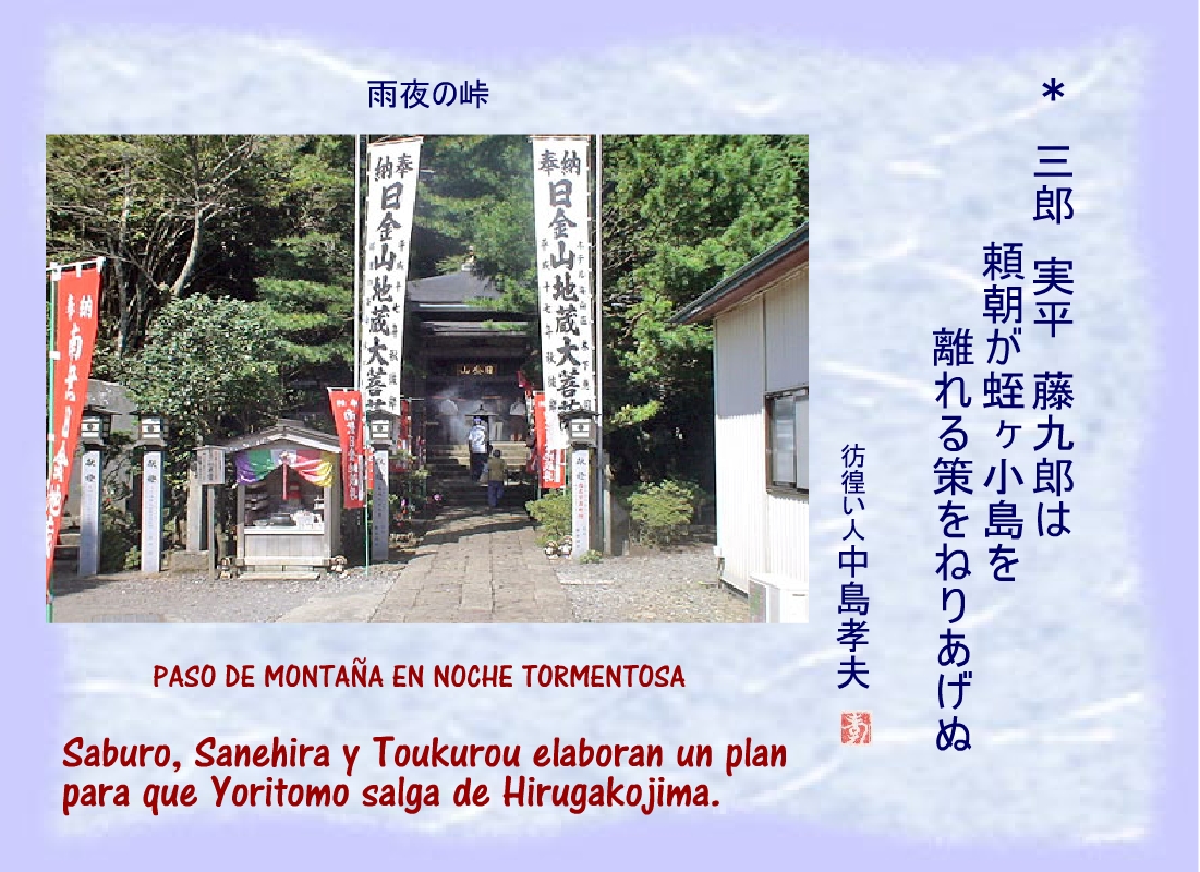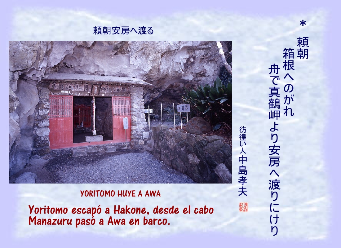 Yoritomo escapó a Hakone, desde el cabo Manazuru pasó a Awa en barco. |