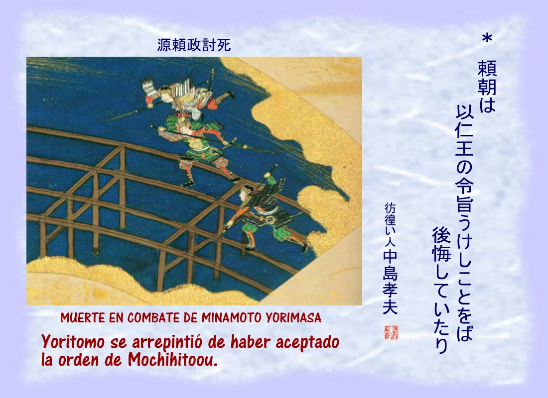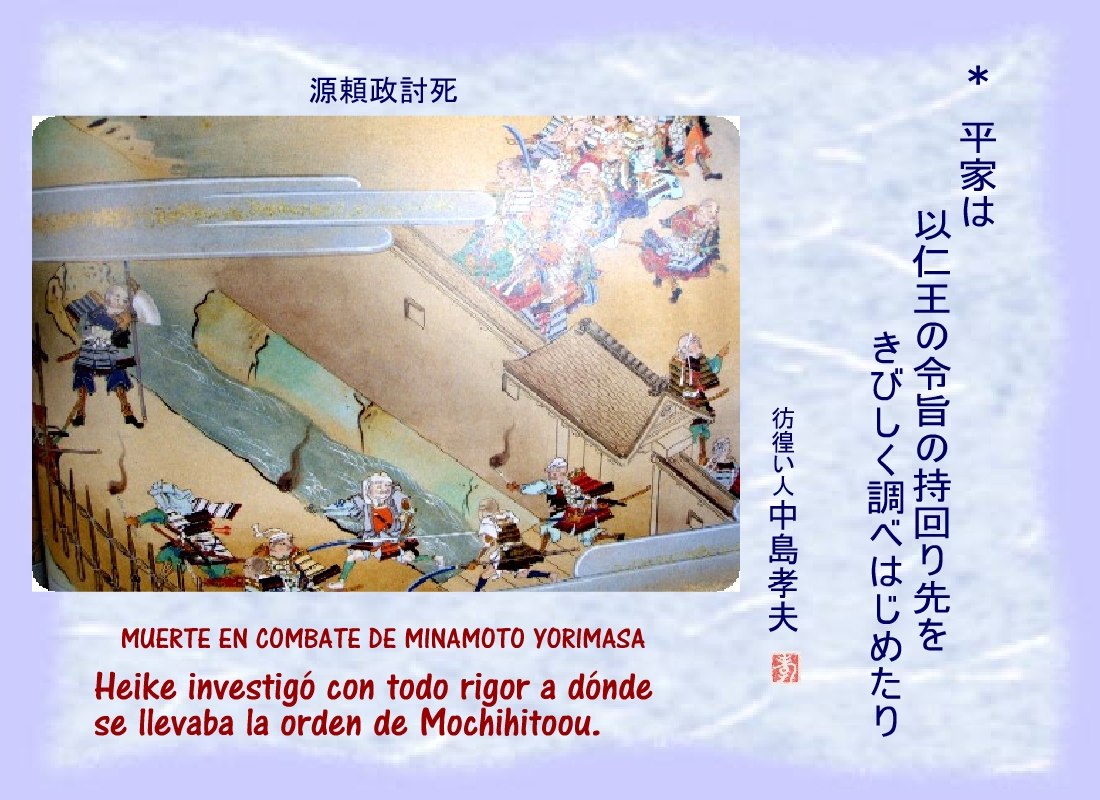 | <源頼政討死> MUERTE EN COMBATE DE MINAMOTO YORIMASA. |