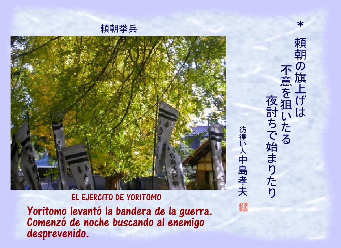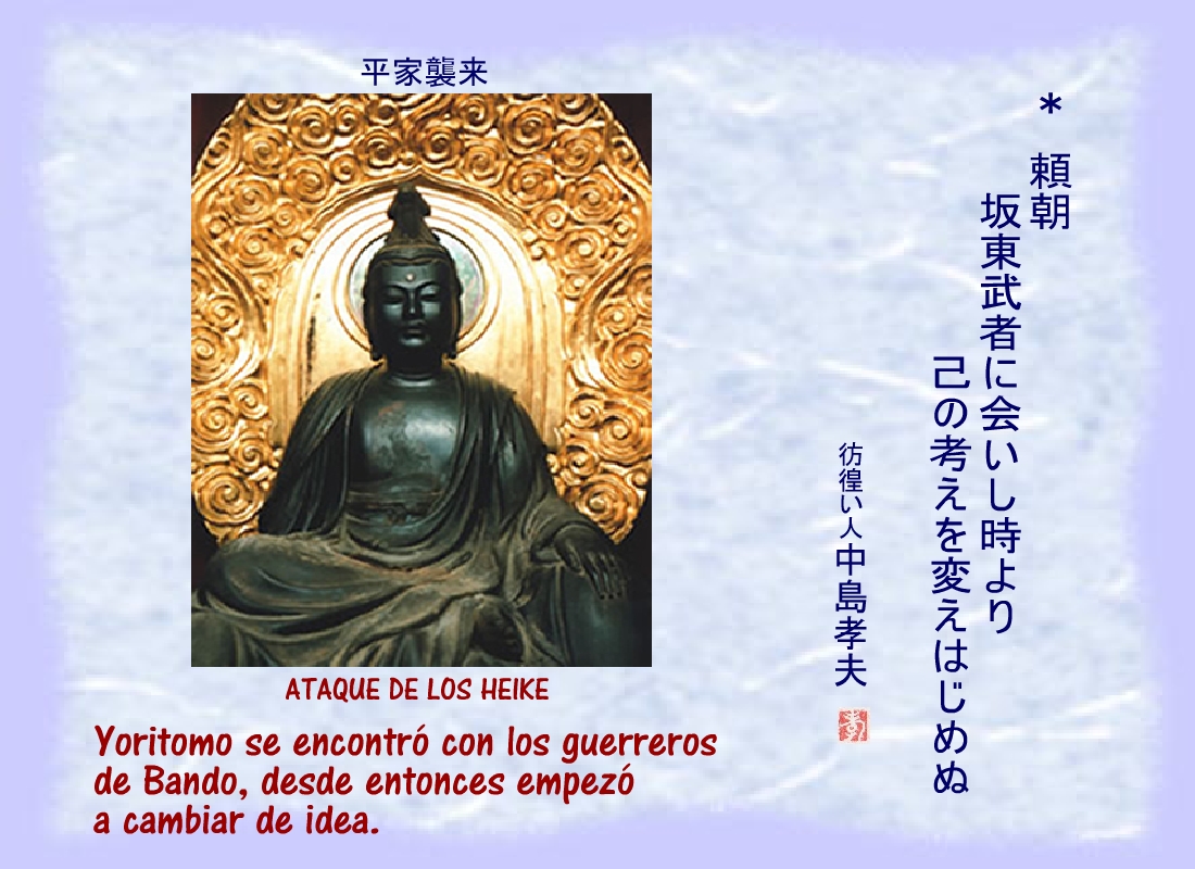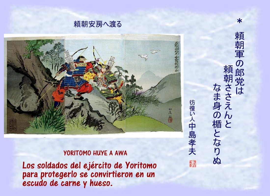 Los soldados del ejército de Yoritomo para protegerlo se convirtieron en un escudo de carne y hueso. |