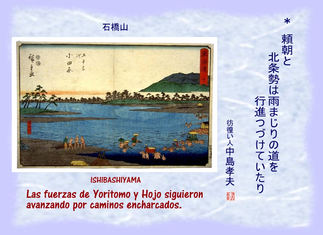 Las fuerzas de Yoritomo y Hojo siguieron avanzando por caminos encharcados. |