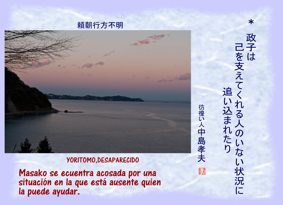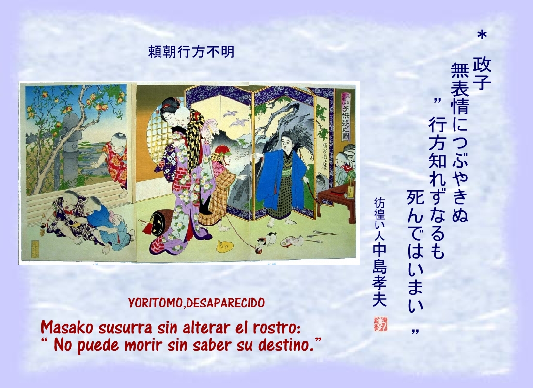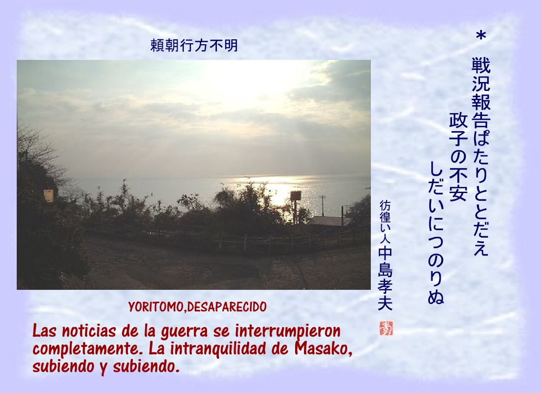 Lo que Masako temiera - Yoritomo en paradero desconocido – así ocurriera. |