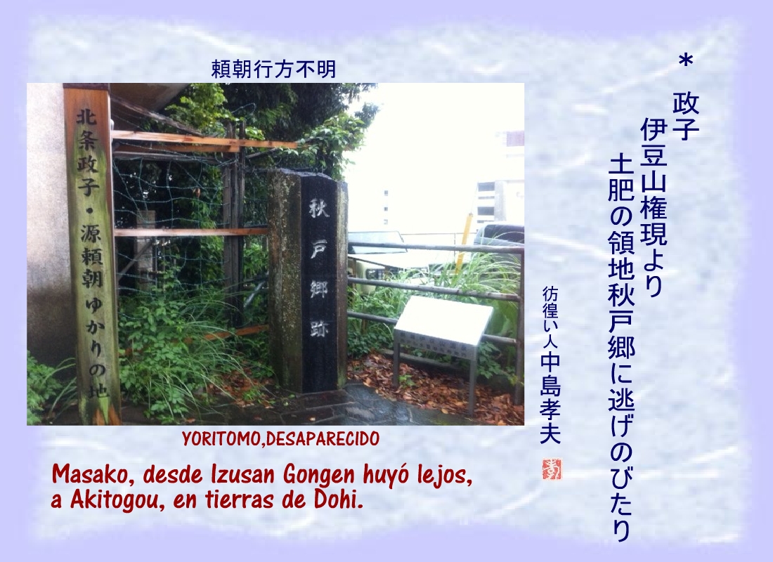 Masako, desde Izusan Gongen huyó lejos, a Akitogou, en tierras de Dohi. |