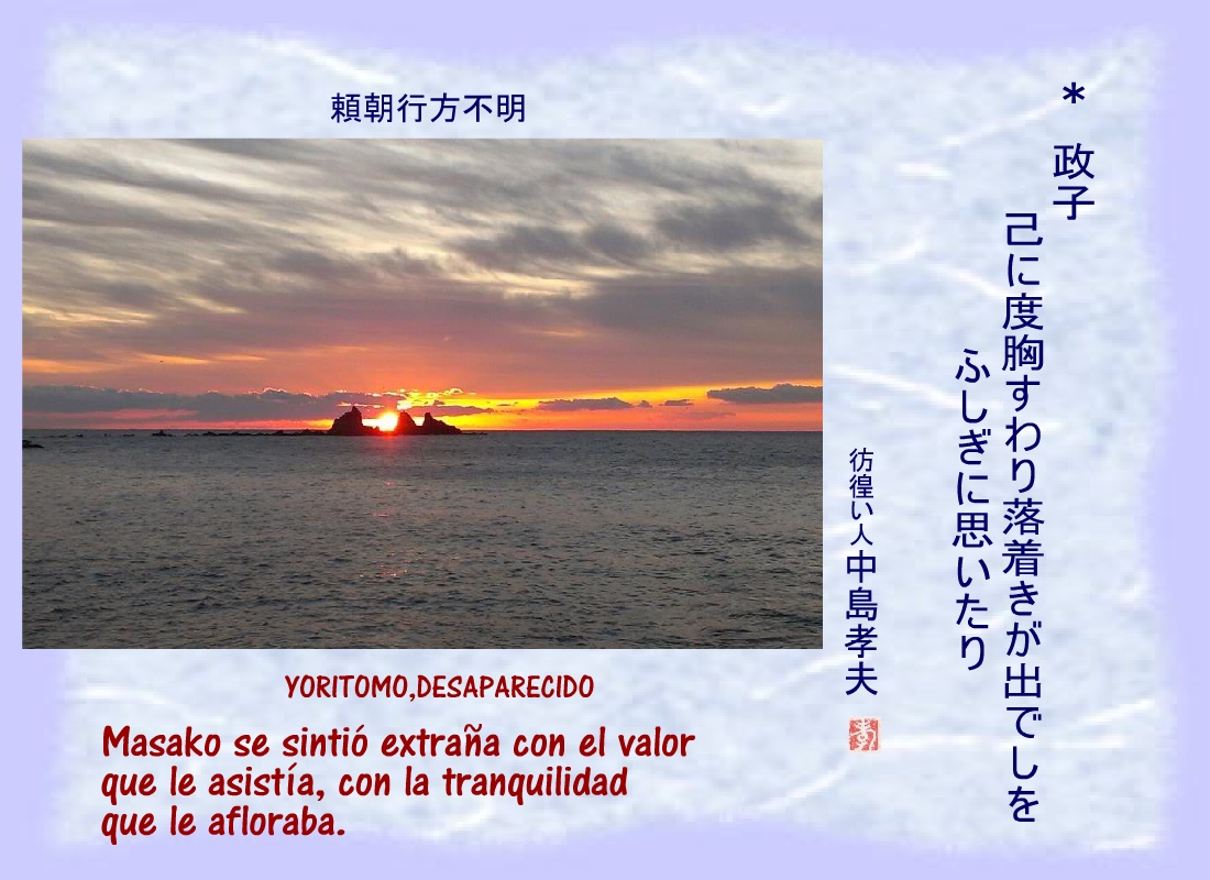 Masako se sintió extraña con el valor que le asistía, con la tranquilidad que le afloraba. |