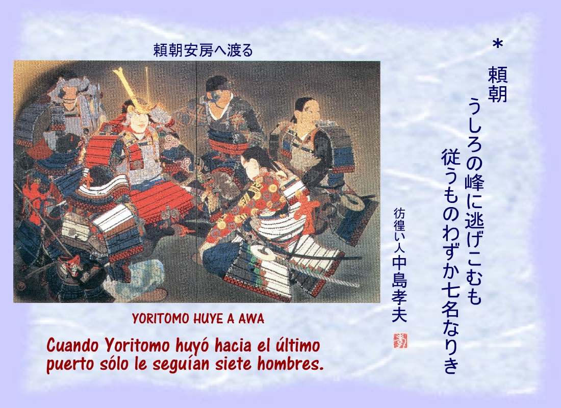Cuando Yoritomo huyó hacia el último puerto sólo le seguían siete hombres. |