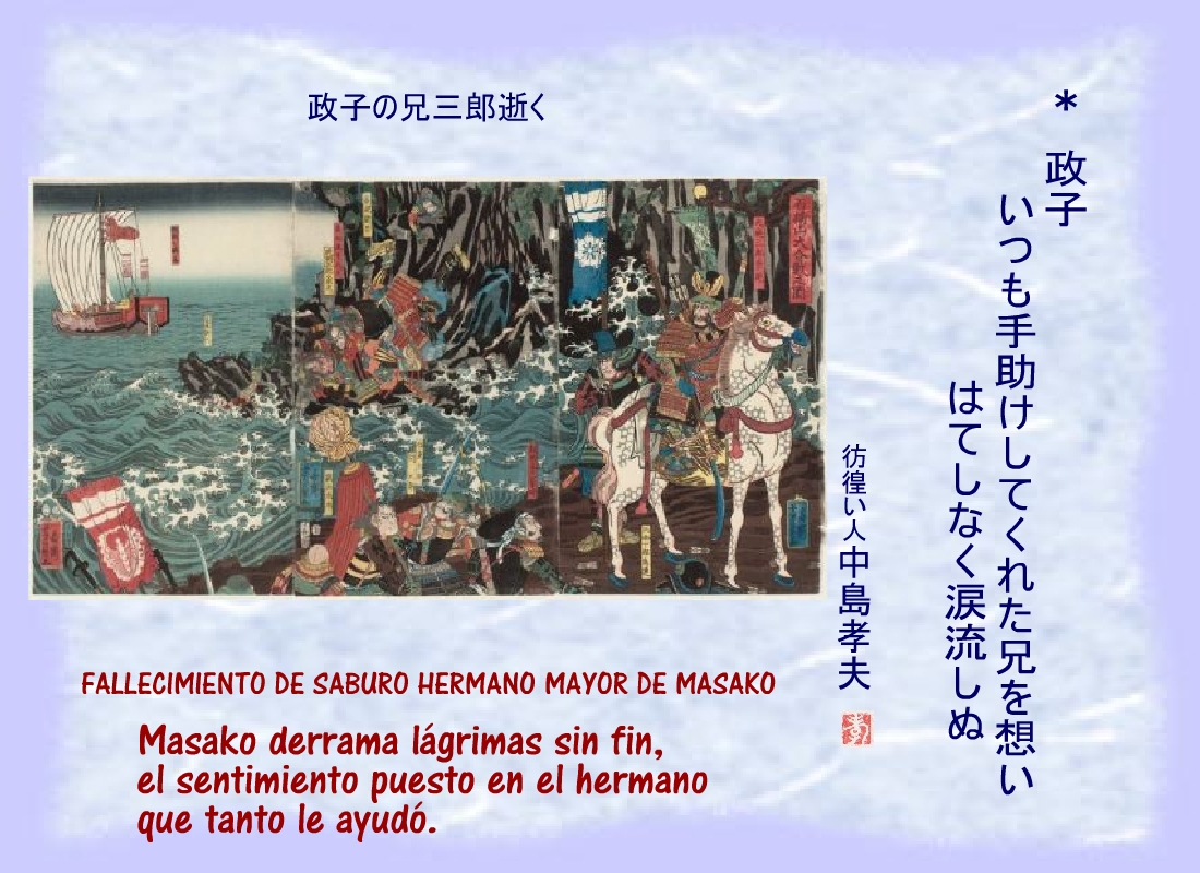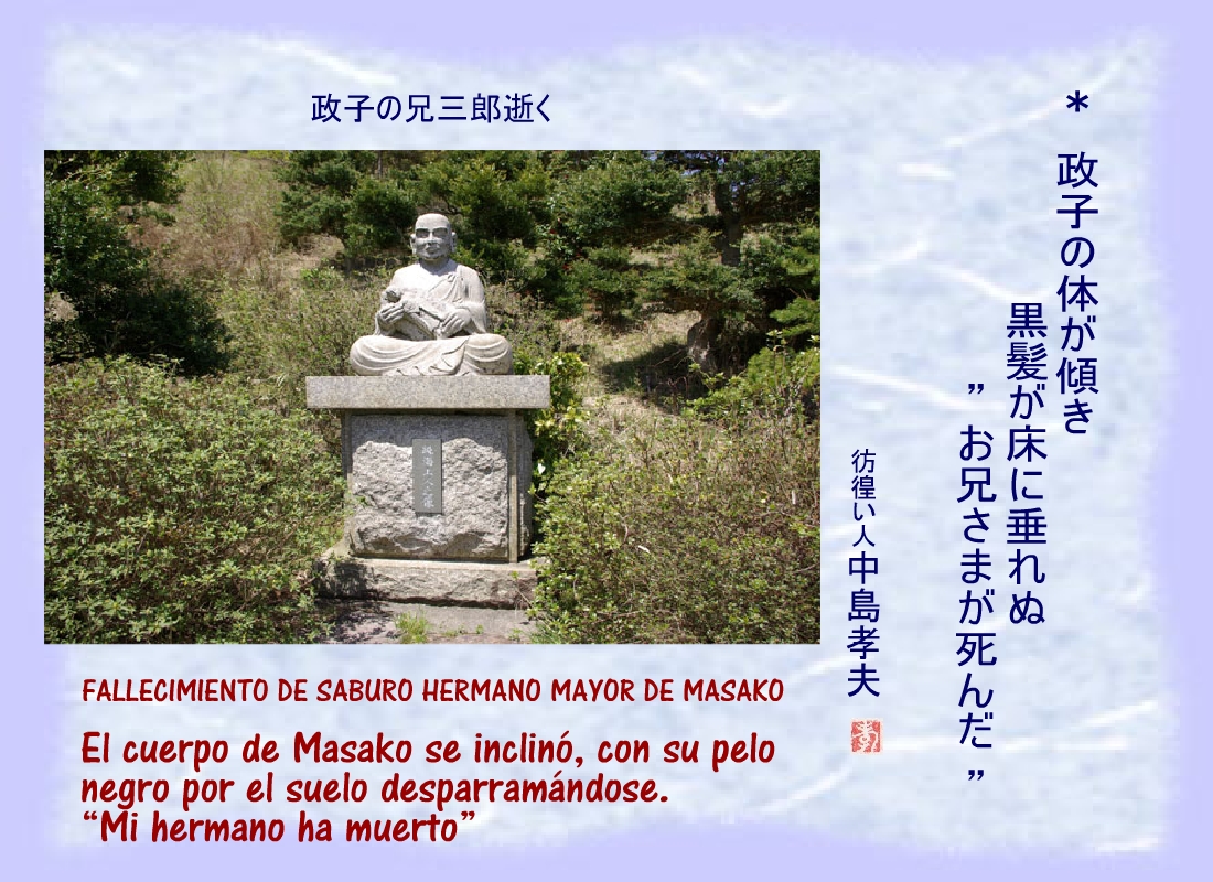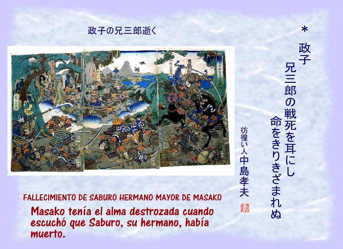 Masako tenía el alma destrozada cuando escuchó que Saburo, su hermano, había muerto. |