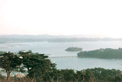 | はるか彼方を眺むれば 雄島の磯は朝もやの中 |